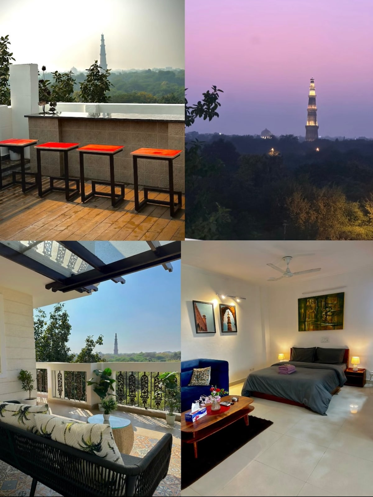 Luxe Duplex with Terrace Bar & Unobstructed Qutub Minar View | Best Stay in Delhi NCR Experience Delhi like never before from this stunning 2BHK duplex featuring a private terrace bar, two bar counters, and panoramic views of the iconic Qutub Minar. its elegant interiors, modern amenities, and unbeatable location, this redefines luxury living in the heart of South Delhi 4th floor NO LIFT NO PARTIES ALLOWED AFTER 11 PM NO MUSIC ALLOWED