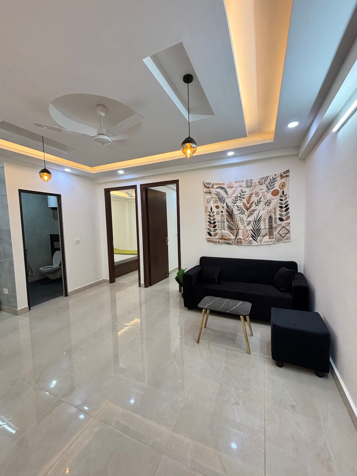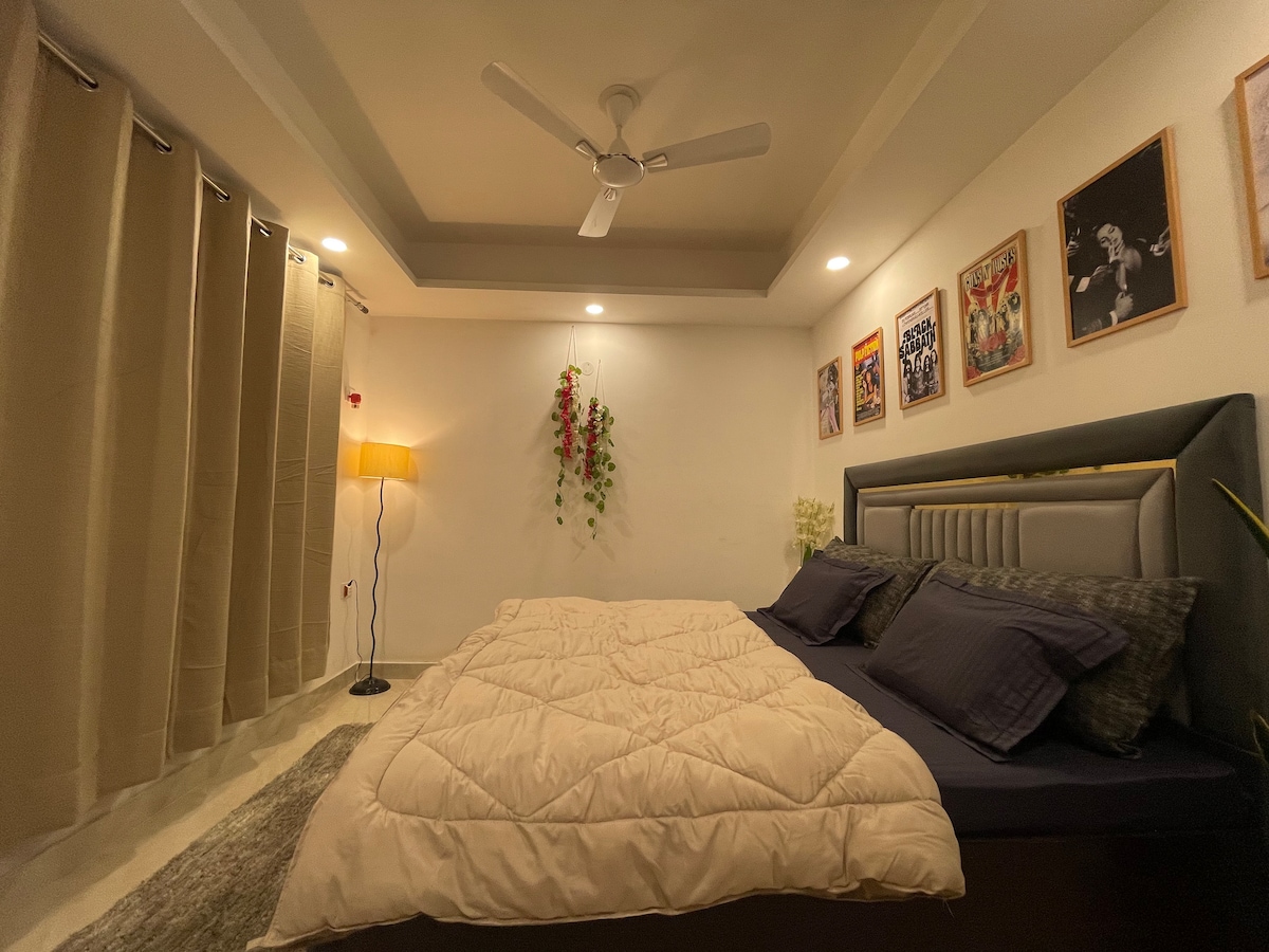 Private: Self check-in / Self - Service studio apartment Experience comfort and convenience in this spacious, modern studio apartment located right on Chhatarpur Road, just 250 meters from Chhatarpur Metro Station (Yellow Line). Perfect for business travelers, couples, or solo guests, this thoughtfully designed studio blends style and practicality for a relaxed urban stay.