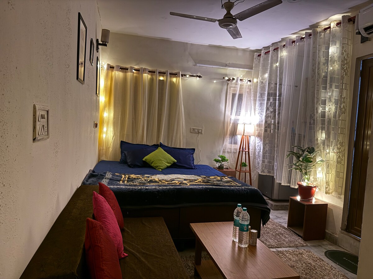 Welcome to our serene rooftop escape in the heart of GK1 ! This charming tiny house is perched on top of our building, offering a unique & peaceful retreat amidst the bustling city. The studio has a sleek, modern design making it perfect for travelers looking for a stylish yet cozy stay. U have exclusive rooftop perfect for evening or morning yoga. Please note, reaching this hidden gem requires climbing three flights of spiral stairs, so it's best suited for those who are fit and adventurous.