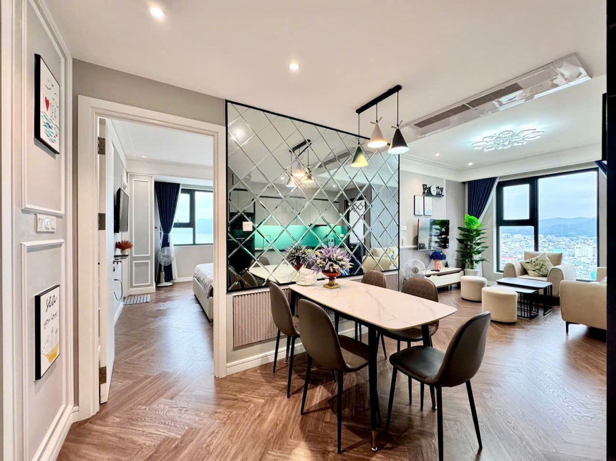 Căn hộ cao cấp nằm tại toà nhà trung tâm thành phố. Căn hộ có 2 phòng ngủ và 2 wc. Căn hộ có bếp để nấu ăn và máy giặt, bàn là. Căn hộ có tầm nhìn ra biển và núi, thành phố. Toà nhà có bể bơi ở tầng 40, có tầm nhìn tuyệt vời ra biển, núi, và cả thành phố trọn vẹn. Toà nhà có phòng tập gym. Từ đây bạn có thể dễ dàng đi đến các quán ăn, cửa hàng tiện lợi một cách nhanh chóng. Bạn chỉ mất khoảng 5 phút đi bộ đến bãi biển. Ngoài ra, tôi có cung cấp dịch vụ tour và cho thuê xe máy.