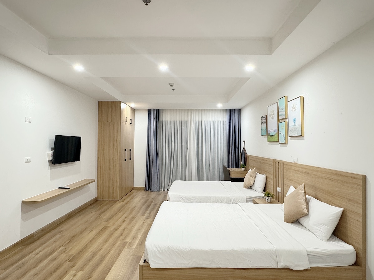 Welcome to a relaxing seaside retreat in the heart of Quy Nhon! This modern and cozy studio with a sea view balcony is located inside TMS Quy Nhon - Hupasearest - just a 2-minute walk from the beach. Ideal for couples, solo travelers or business travelers looking for a clean and fully-furnished space like your own home. 🛏️ The studio is equipped with: 1 comfortable King-size bed. Air conditioning, Wi-Fi, Smart TV. Kitchenette with refrigerator, cooking utensils. Private bathroom with hot water