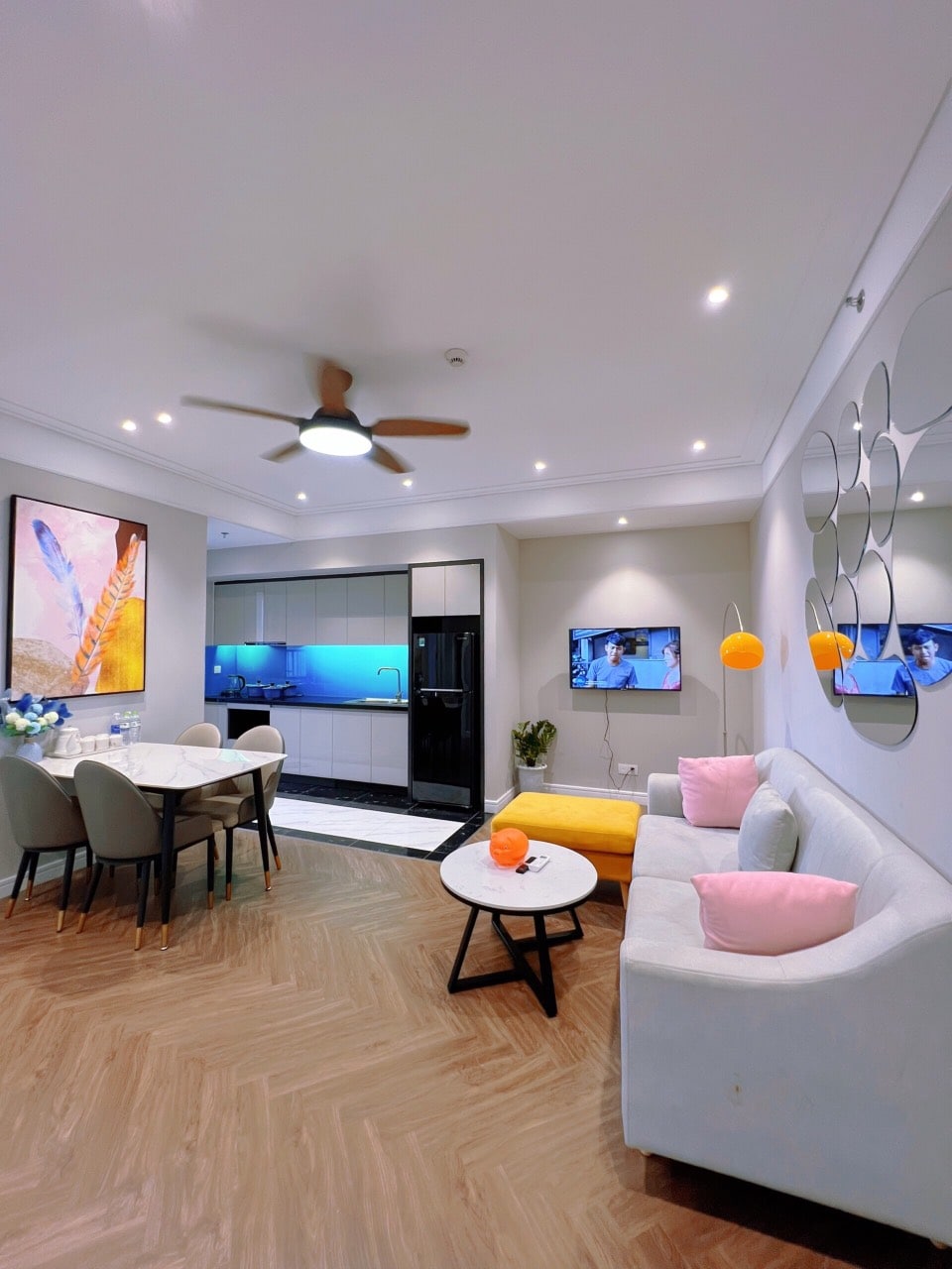Located in a 4-star building, just 1 minute from the beach in front. 76 Tran Hung Dao Quy Nhon 💧💧💧Luxury APARTMENT INTERIOR with full modern equipment: 🎬 Smart TV with Netflix pre-installed Washing machine for comfortable use without charge 💧Super large refrigerator with 2 freezer and cool compartments 👩🍳 Smart induction cooker system with full kitchen utensils, and genuine hood. Feel free to cook for your family if you don't want to go to a restaurant!