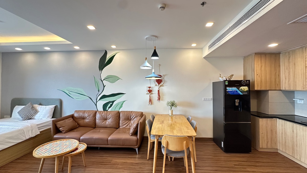 Sea-View Studio with luxurious interior and great view on the 26th floor at TMS Quy Nhon: - Area: 47 m2 - Fluffy and soft mattress with 4-star hotel standard bedding - Smart TV with high speed Internet (upload/download: 150Mbps) - Fully equipped kitchen, fridge, microwave - Rooftop access - Pay per use amenities: pool, gym & spa - Free drinking water - On the beach - Centrally located Suitable for couples that like to cook and enjoy larger spaces.