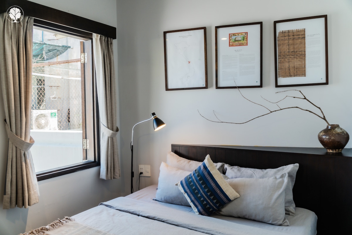 Dao Room is on the second floor of a small four-story house in central Quy Nhon, just a 5-minute walk to the beach. This small private 18m² room has a small en-suite bathroom, compact kitchenette, wall-mounted TV, air conditioning, wardrobe, desk, and Wi-Fi. The room is filled with natural light, it features linen bedding, wooden furniture, and a few handmade touches add a warm and cozy feel. Step out onto the balcony overlooking a calm street with occasional city sounds can be heard.