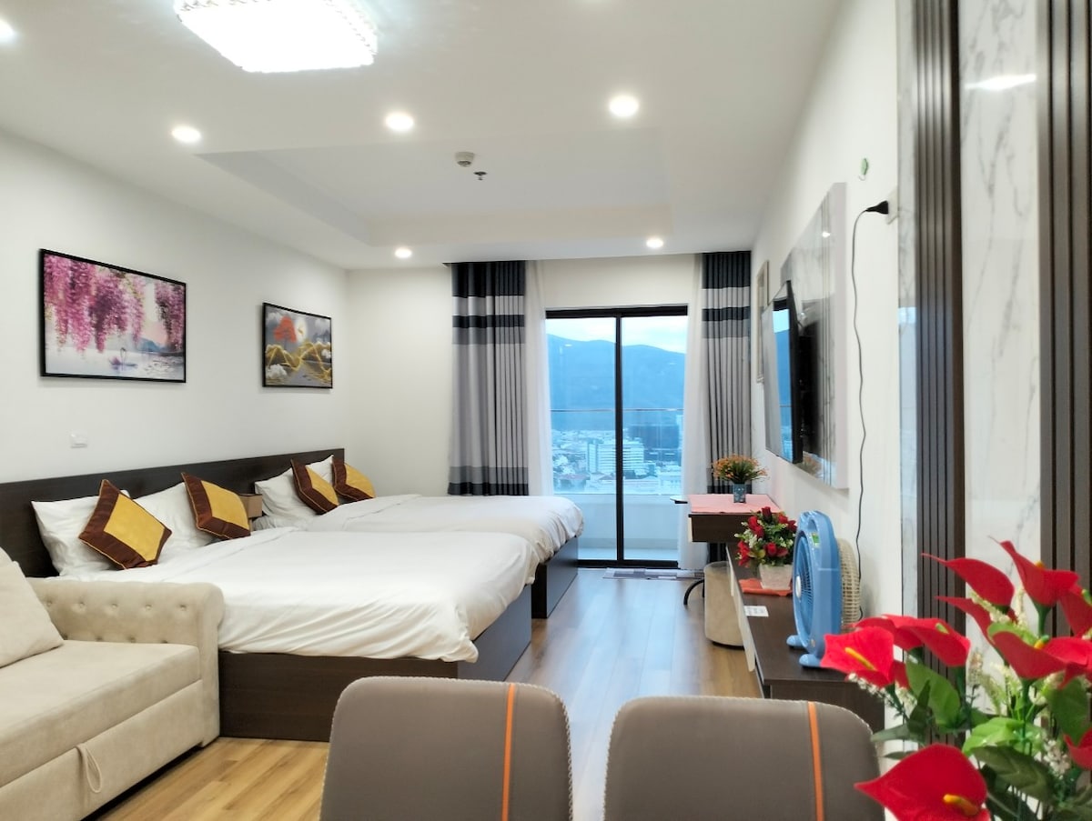 🌊 Wake up to the sound of waves and a stunning sea view from your balcony at this high-rise apartment at TMS Quy Nhon - Hupasearest! This modern and luxurious studio apartment has a private balcony overlooking the sea, perfect for families, small groups or friends traveling together, equipped with: • 2 Queen-sized beds • Smart TV, high-speed Wi-Fi, air conditioning and washing machine • Private bathroom with hot water, toiletries, hairdryer • Kitchenette with fridge, kettle and basic utensils