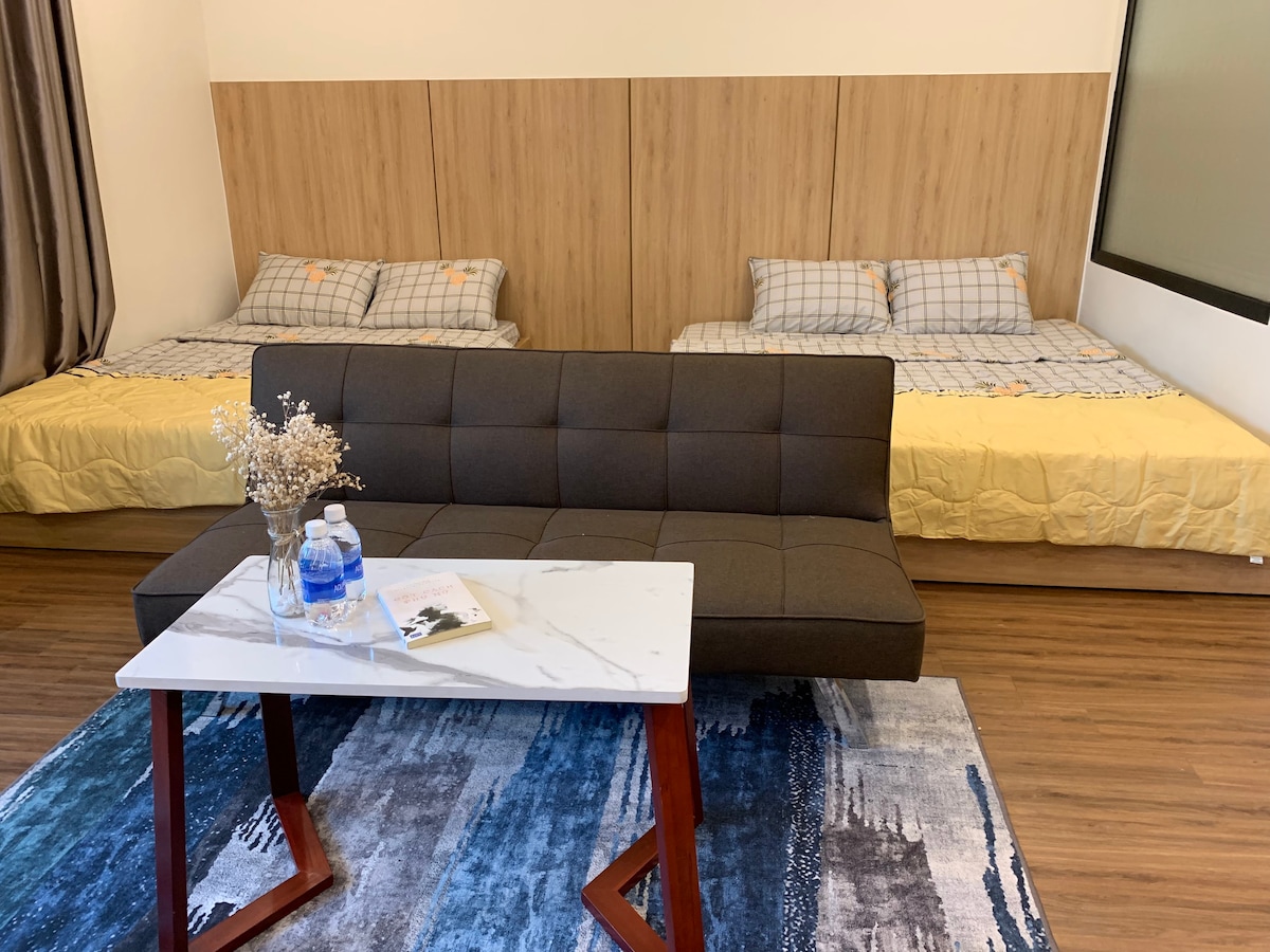 Located in the heart of the city, just steps away from Quy Nhon’s sandy beach, this apartment offers a spacious living area with a private balcony overlooking the sparkling ocean. The apartment features: • 2 comfortable bedrooms with fresh linens and soft pillows • A fully equipped kitchen for home-style meals • Bright living room with smart TV and free Wi-Fi • Modern bathroom with hot shower and essentials provided • Air conditioning in every room