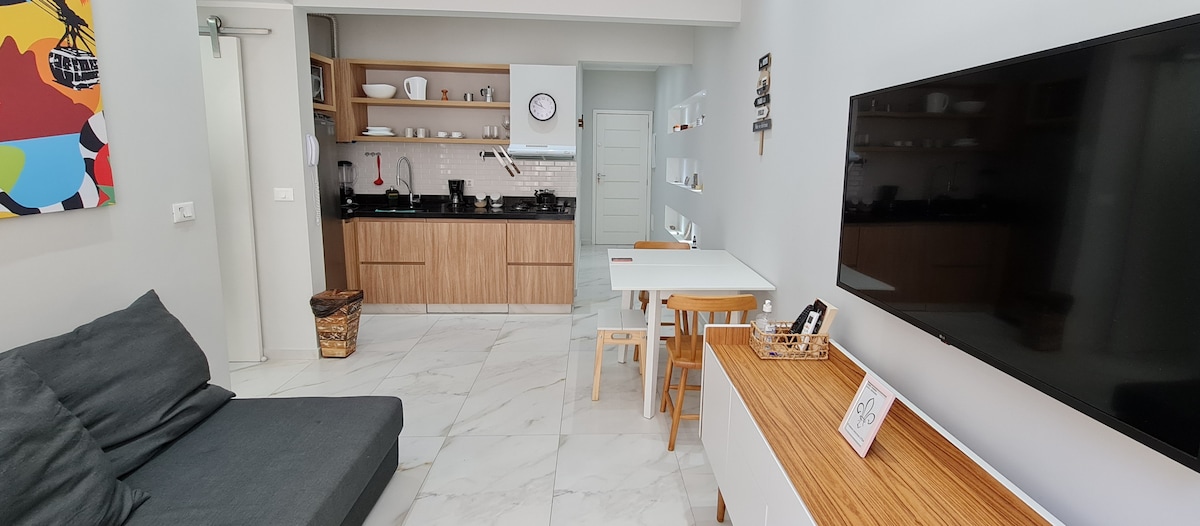 Newly renovated, our spacious 3-bedroom luxury apartment is located in the most active area of Copacabana, minutes away from the iconic beach, bars, restaurants and within walking distance of Ipanema, Lagoa and two subway stations. It was carefully designed to combine sophistication, luxury and technology with Rio’s lifestyle. AC in the living room & kitchen and 3 bedrooms, full kitchen, 110- and 220-volt outlets, enhanced Wi-Fi, washer, drier, dishwasher, Smart TVs. All brand new.