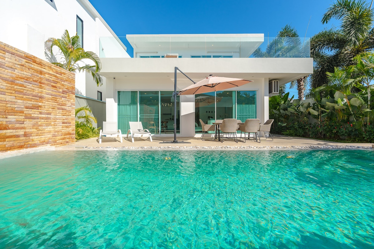 Villa de luxe au design moderne avec piscine privative, parfaitement adaptée à votre séjour en famille ou entre amis. Située dans un quartier paisible, proche de toutes commodités, et des plages de Rawai et Naiharn, cette somptueuse villa dispose d'une piscine entièrement recouverte de marbre, et dotée d'un systeme de filtration à eau salée. A l'intérieur, vous disposerez de 140 m2 repartis en un grand salon ouvert sur une cuisine toute équipée, ainsi que 3 chambres avec salle de bain privée.