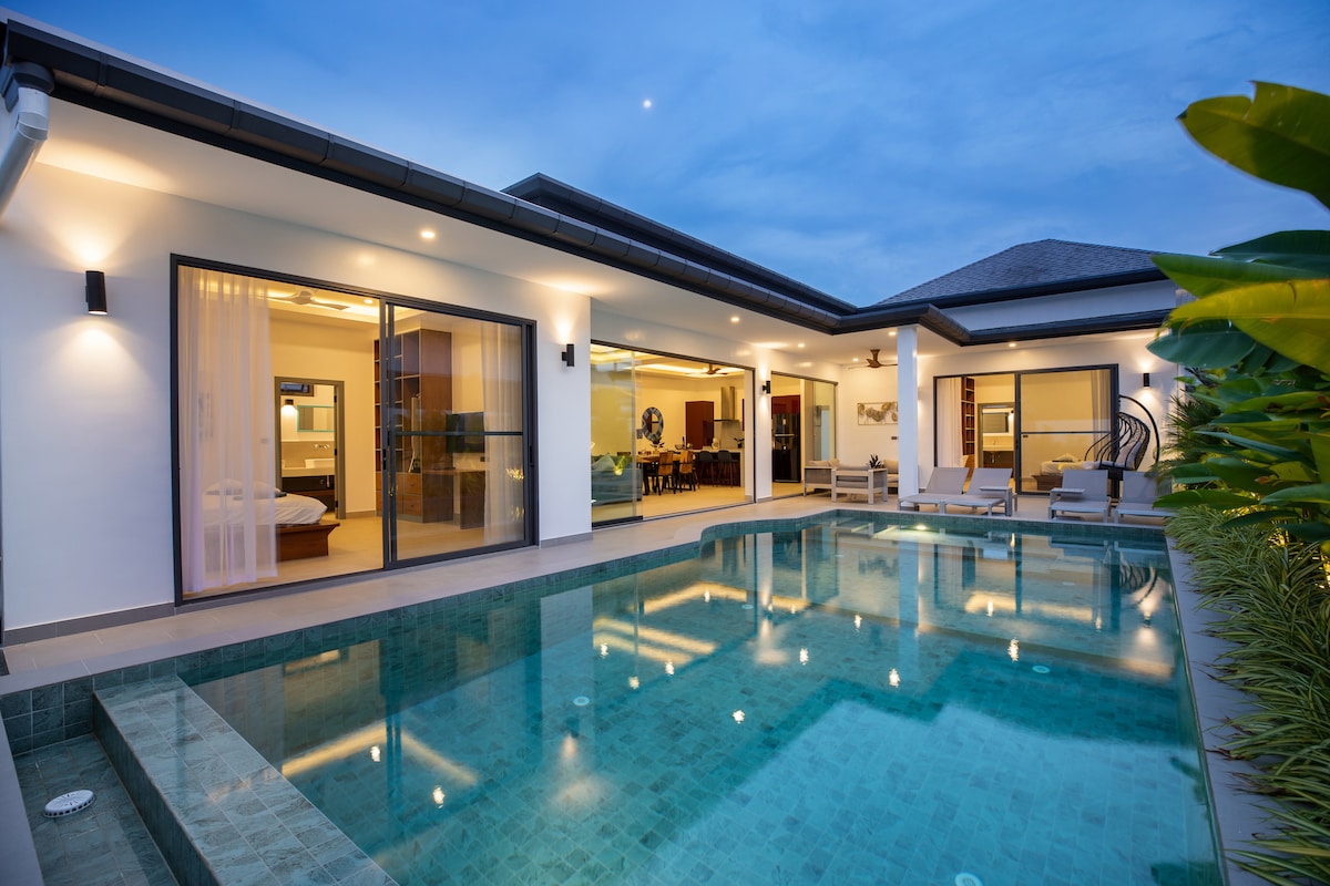 Villa de luxe au design moderne avec piscine privative, parfaitement adaptée à votre séjour en famille ou entre amis. Située dans un quartier paisible, proche de toutes commodités, et des plages de Rawai et Naiharn, cette somptueuse villa dispose d'une piscine entièrement recouverte de marbre, et dotée d'un systeme de filtration à eau salée. A l'intérieur, vous disposerez de 140 m2 repartis en un grand salon ouvert sur une cuisine toute équipée, ainsi que 3 chambres avec salle de bain privée.