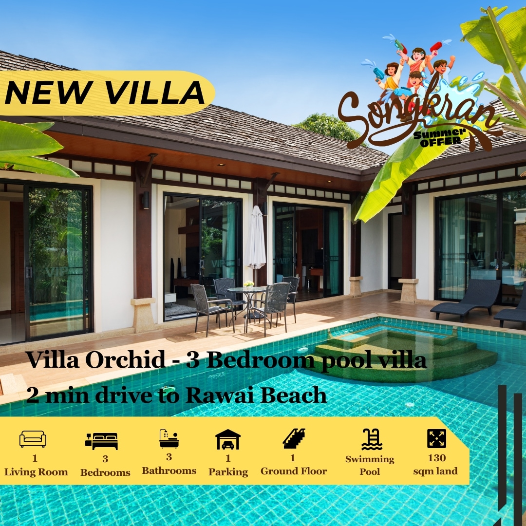 Escape to our 3-bedroom villa, just a 5-minute walk from Rawai Beach. Relax in your private pool and enjoy modern amenities, spacious living areas, and a secure neighborhood. Perfect for families, it combines comfort and convenience while exploring local culture and stunning beaches. Nai Harn Beach is just a 10-minute drive away. ✨ We provide not just a stay, but an unforgettable Phuket experience✨