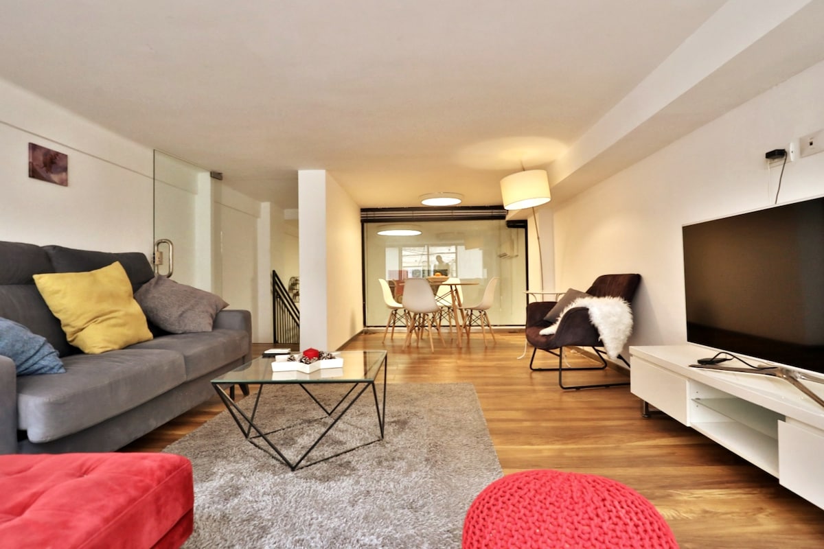 Staying in Tel Aviv you want to be in the best central location. This newly renovated, modern, spacious, quiet flat is steps away from the popular Rothschild promenade, Habima Square and Dizingoff Street. A ten minute walk will get you to the most spectacular beach. Please Note: Second floor unit (no elevator, 20 stairs up from the entrance). No Mamad in the flat, but there is Miklat (bomb shelter) on basement level for all guests open 24/7. Not suitable for guests with children aged 2-5.