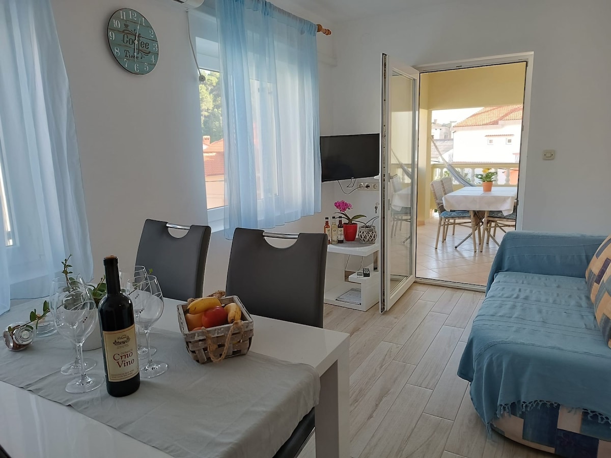 Place for a miraculous vacation! The Apartment 3 + 1 cca. 65m2 containes: *equipped kitchen *bathroom *living room *two bedrooms *balcony *bed sheets and towels *TV / SAT *WIFI *Air conditioning *extra bed for a fourth person ( 10,00 €.- per day) *baby cot on request *breakfast on request (€ 7.00 .- per person / per day)