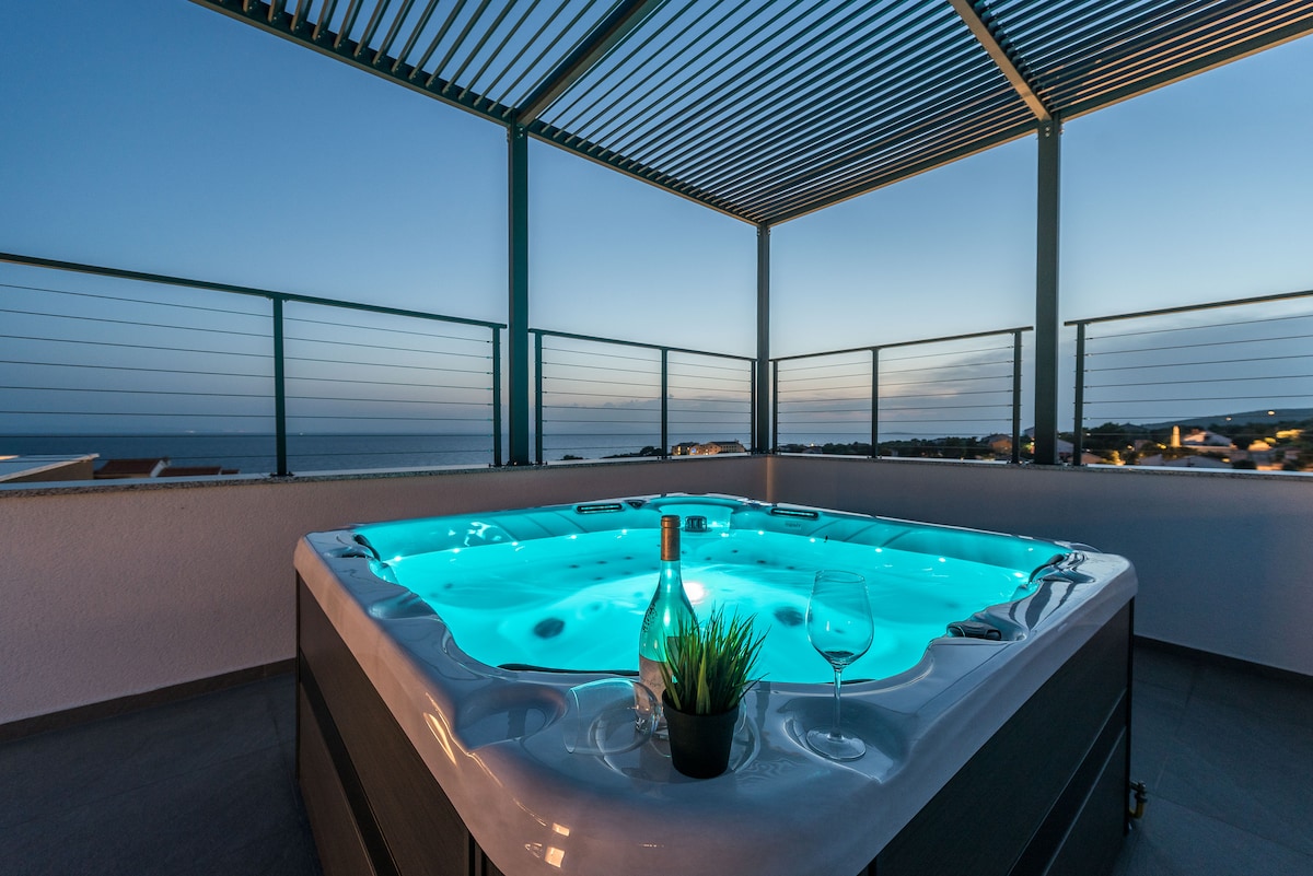 Explore Old Town Krk and attractions within minutes. 5-star Platinum Apartment 4 for 6 guests with 3 king-size bedrooms and 3 bathrooms. With 2 private terraces, a living room and kitchen, HOT TUB and INFRA RED SAUNA. PARKING spot for 2 cars provided inside Old Town walls! Centrally located in Old Town Krk, 200m from the beach, with nearby restaurants, shops, wine tasting, and historic charm. All needed amenities are provided including WiFi and Netflix. Modern design for a peaceful escape.