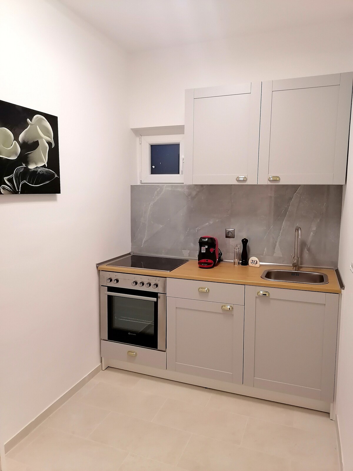 U ponudi su jedan veći apartman ,jedan manji i studio.Apartmani su novo uređeni, sa osiguranim parkirnim mjestima, u samom centru . U blizini ACI marina, nogometno igralište, škola, plaža udaljena 200 metara. Mogućnost korištenja roštilja na vanjskoj terasi. Apartmani su sa pogledom na more i iz spavaćih soba i iz boravka. Svaka soba ima vlastiti balkon i vlastitu kupaonicu. Boravak uključujući kuhinju stol za objed i terasu sa pogledom na more. Kućni ljubimci dozvoljeni uz dodatnu nadoplatu.