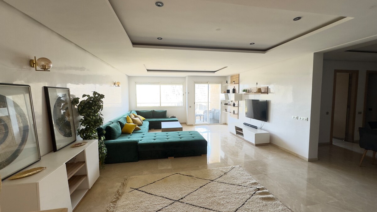Welcome to our stunning 3BR apartment located in the heart of Hay Riad in Rabat! This luxurious and spacious property offers the ultimate in comfort and style, with two living rooms, a dining room, fireplace, three bathrooms, three bedrooms, and a fully equipped kitchen. The apartment features three spacious and beautifully decorated bedrooms. Our 3BR apartment in Hay Riad is the perfect choice for families, couples, and groups of friends looking for a luxurious and comfortable stay in Rabat.