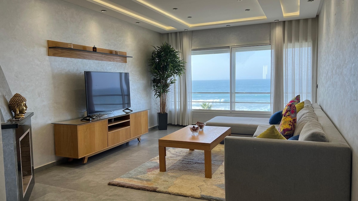 Appartement de luxe avec grandes baies vitrées offrant une vue imprenable sur Rabat, sa plage et ses monuments. Les pieds dans l'eau et à quelques mètres de la marina, de nombreux restaurants et commerces. Vivez le luxe ultime en plein coeur de la ville. Profitez du coucher du soleil depuis votre canapé. Suite parentale et 2 chambres à coucher, cuisine équipée, terrasse, salle à manger et double salon. ce grand appartement est l'espace vacances et de séjour dont vous rêvez.