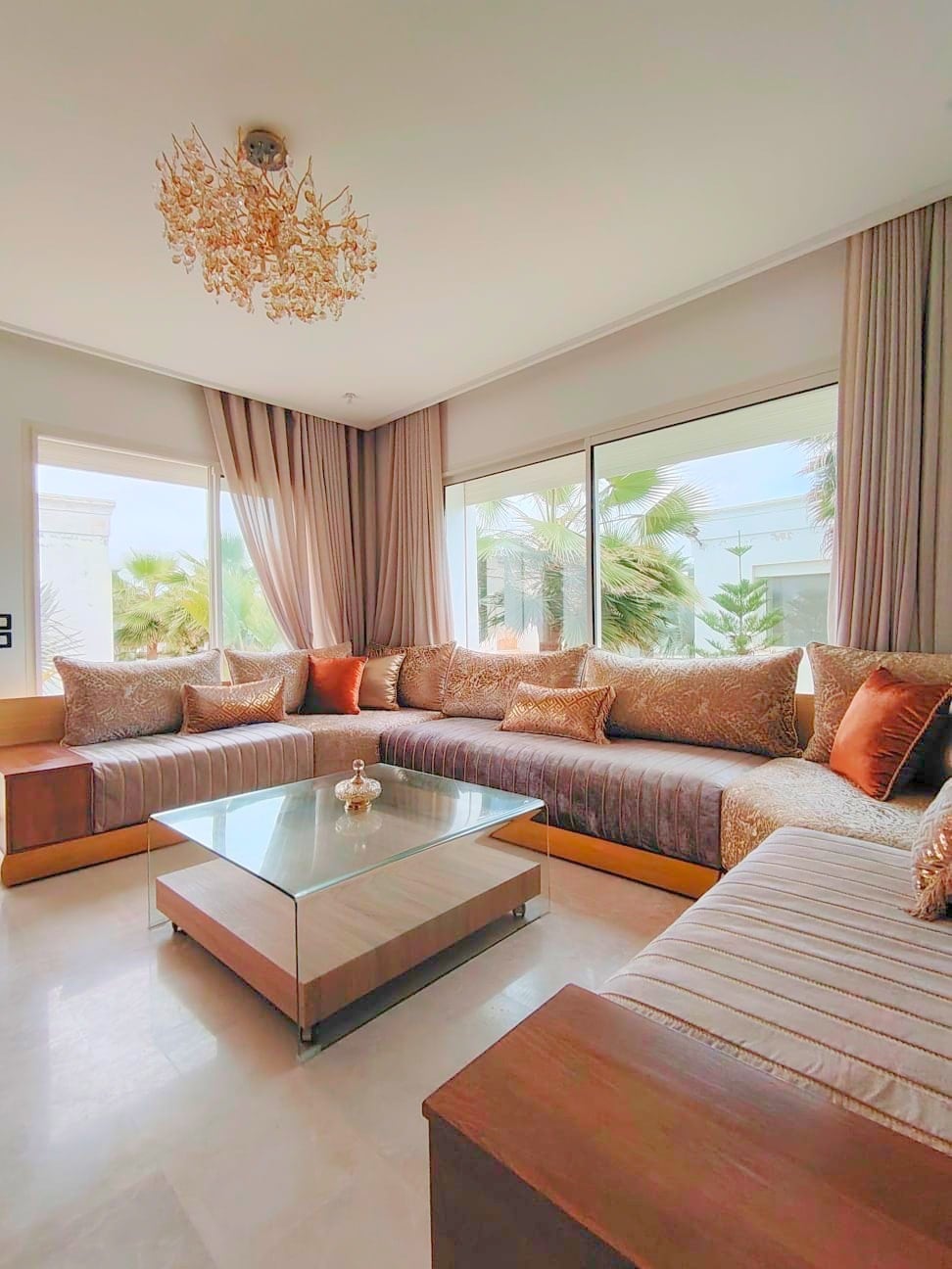 Welcome to our stunning 3BR apartment located in the heart of Hay Riad in Rabat! This luxurious and spacious property offers the ultimate in comfort and style, with two living rooms, a dining room, fireplace, three bathrooms, three bedrooms, and a fully equipped kitchen. The apartment features three spacious and beautifully decorated bedrooms. Our 3BR apartment in Hay Riad is the perfect choice for families, couples, and groups of friends looking for a luxurious and comfortable stay in Rabat.
