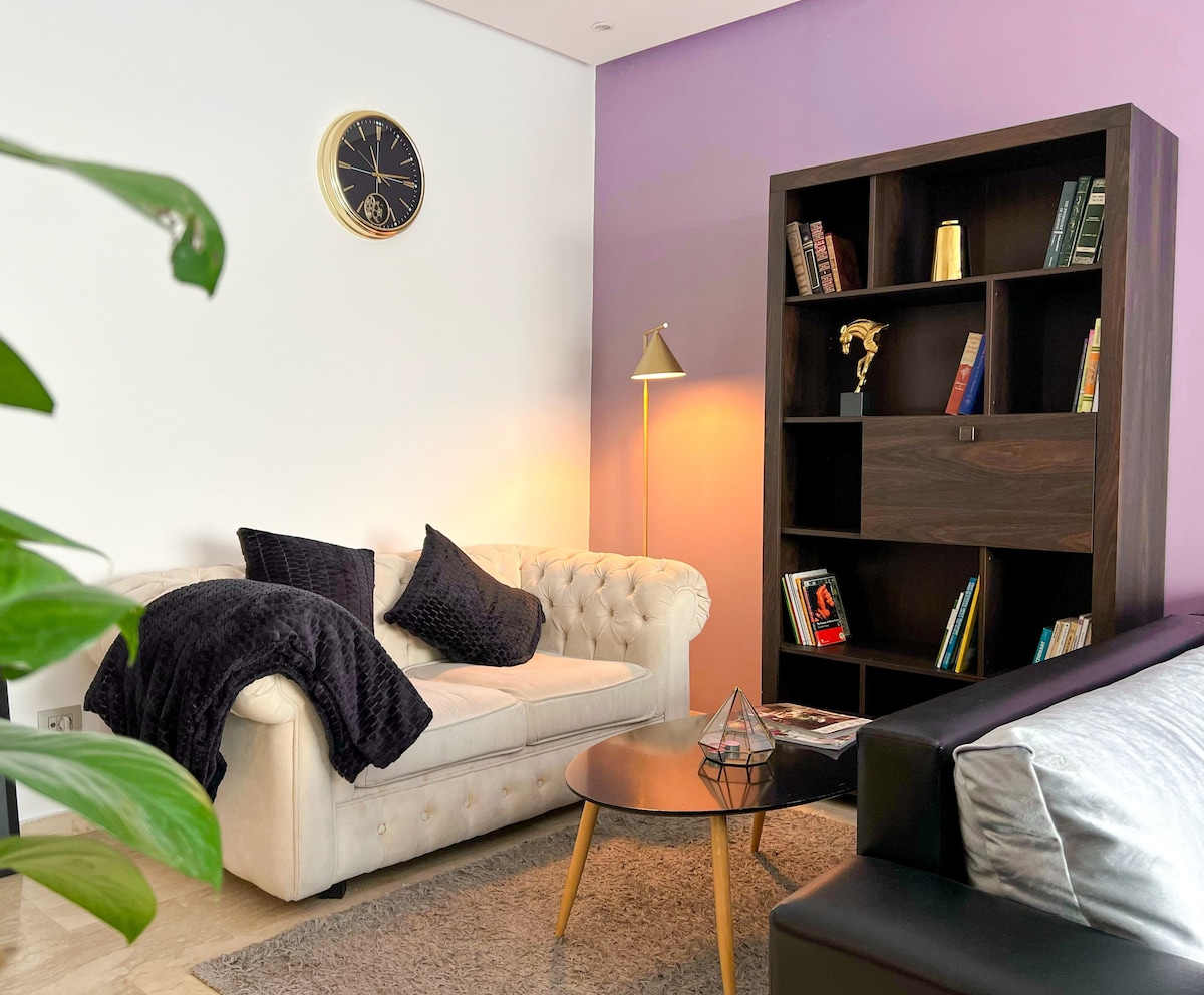 Joli studio au centre de Rabat. wifi Fibre optique ,TV Netflix ، serviette, shampoing. Une grande et une petite serviette pour chaque séjour -proche de tout les commodités: supérettes , boulangerie, cafés et restaurants à proximité - La gare est à 10 mn, lieux touristiques de la ville. - Tramway à 10 mn. - À 15 mn de l’aéroport. Cuisine toute équipée. Bienvenue 😊