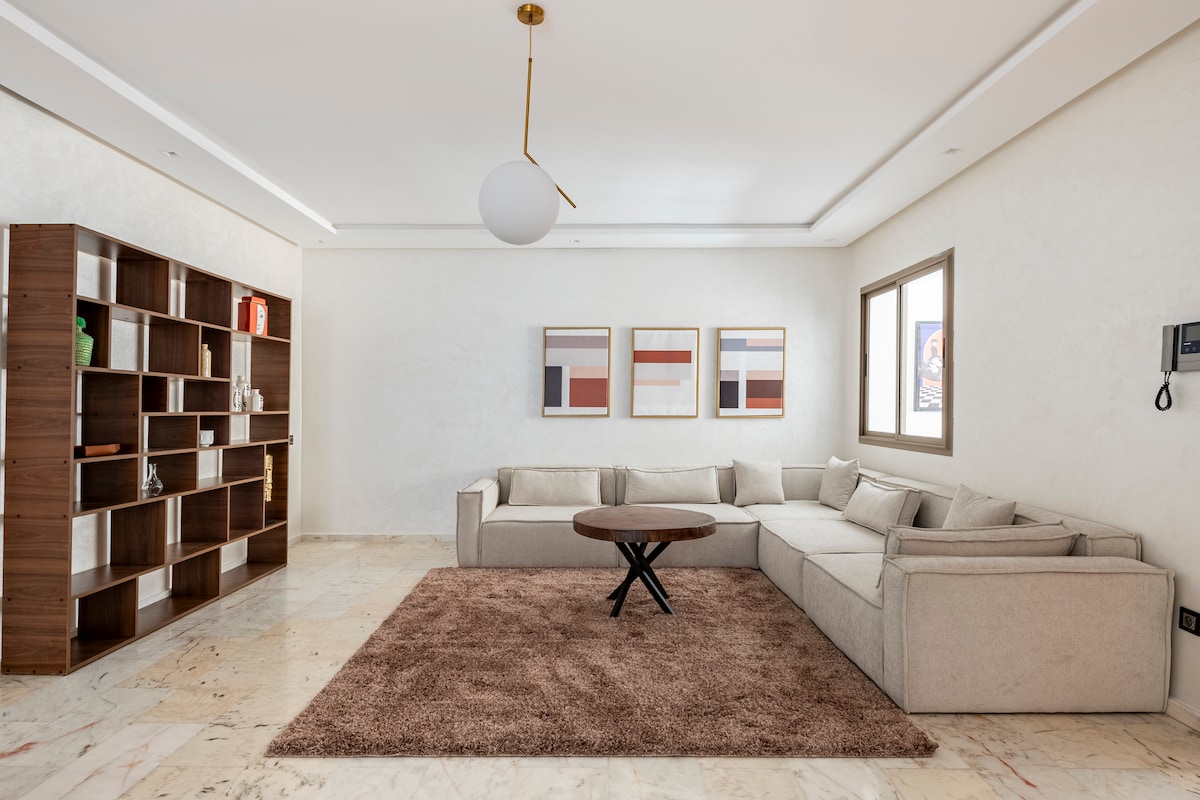 Welcome to our stunning 3BR apartment located in the heart of Hay Riad in Rabat! This luxurious and spacious property offers the ultimate in comfort and style, with two living rooms, a dining room, fireplace, three bathrooms, three bedrooms, and a fully equipped kitchen. The apartment features three spacious and beautifully decorated bedrooms. Our 3BR apartment in Hay Riad is the perfect choice for families, couples, and groups of friends looking for a luxurious and comfortable stay in Rabat.
