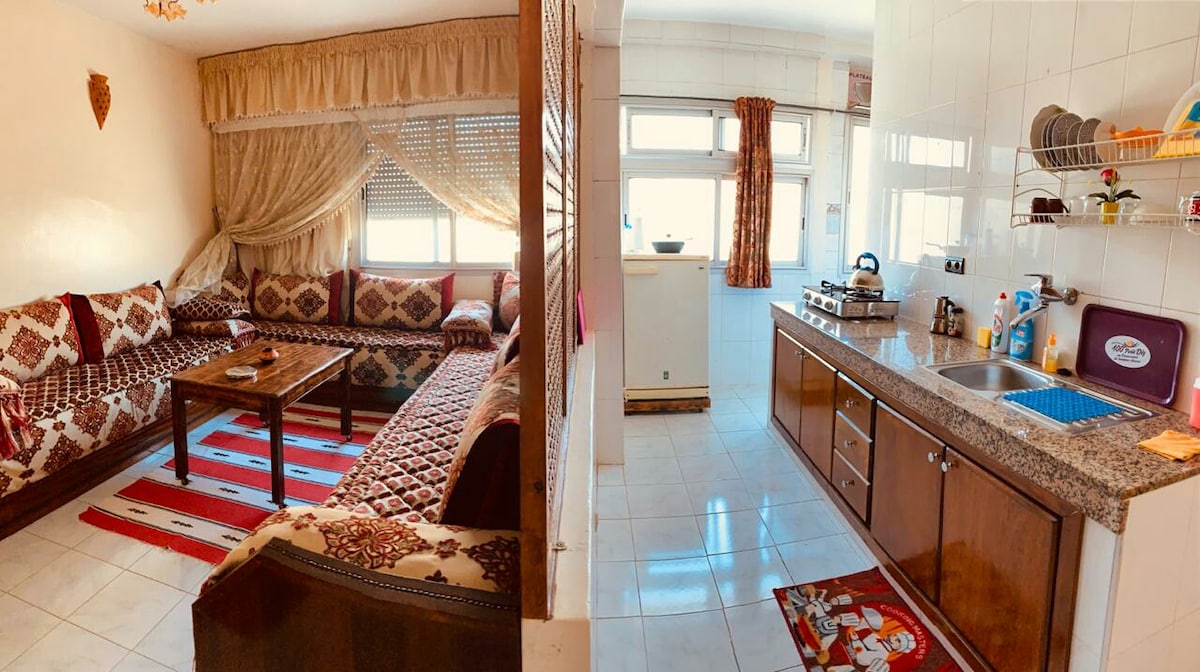 Vous seriez les bienvenus et vous vous sentiriez comme chez vous dans mon studio conçu avec soin et attention. Cuisine entièrement équipée. Linge de maison en abondance. Propreté irréprochable. Le logement est au 4ème étage d'un beau bâtiment art-déco avec terrasse commune. Le logement possède une situation stratégique pour sa proximité avec diverses commodités, notamment gare, tramway, navette aéroport, centre ville, médina, palais royal, musée, Kasbah des Oudayas, Tour Hassan...