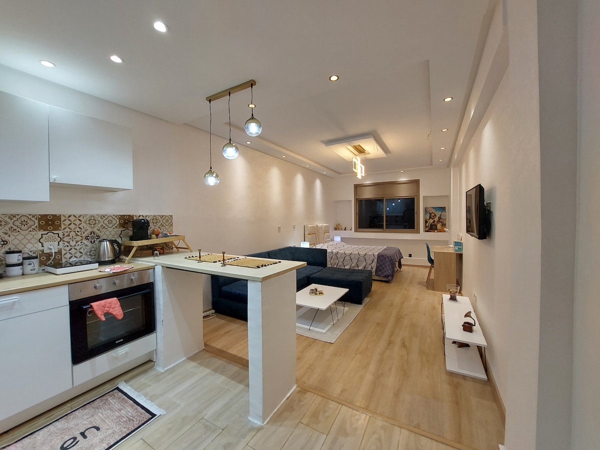 🌟 Studio ElyCity – Pratique et lumineux au cœur de l’Agdal Situé au rez-de-chaussée d’une résidence, le studio ElyCity offre un cadre moderne, chaleureux et parfaitement équipé pour un séjour agréable à Rabat. Profitez d’un emplacement de premier choix : •À 5 minutes à pied de la gare de l’Agdal et du tramway •Sur l'avenue animée Fal Ould Ouleir, avec ses nombreux restaurants, bars et cafés •À deux pas des quartiers administratifs, ainsi que de toutes les commodités essentielles.