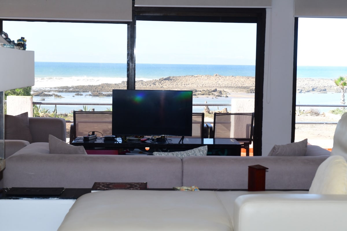 Idéal pour se reposer ! Villa en bord de mer avec jardin, et accès direct à la plage Val d’Or, Rabat. Restaurant les 3 palmiers, supérette, pharmacie et station d’essence à 1km de ce havre de paix. WiFi gratuit. Serviettes + draps fournis. Cette maison dispose de : -1 espace à vivre comprenant : salon avec coin smartTV + table à manger pour 8 personnes + coin cheminée -1 cuisine américaine équipée -3 chambres -3 salles de bain + 3 WC -1 terrasse -1 jardin -3 places de parking privées.veccc