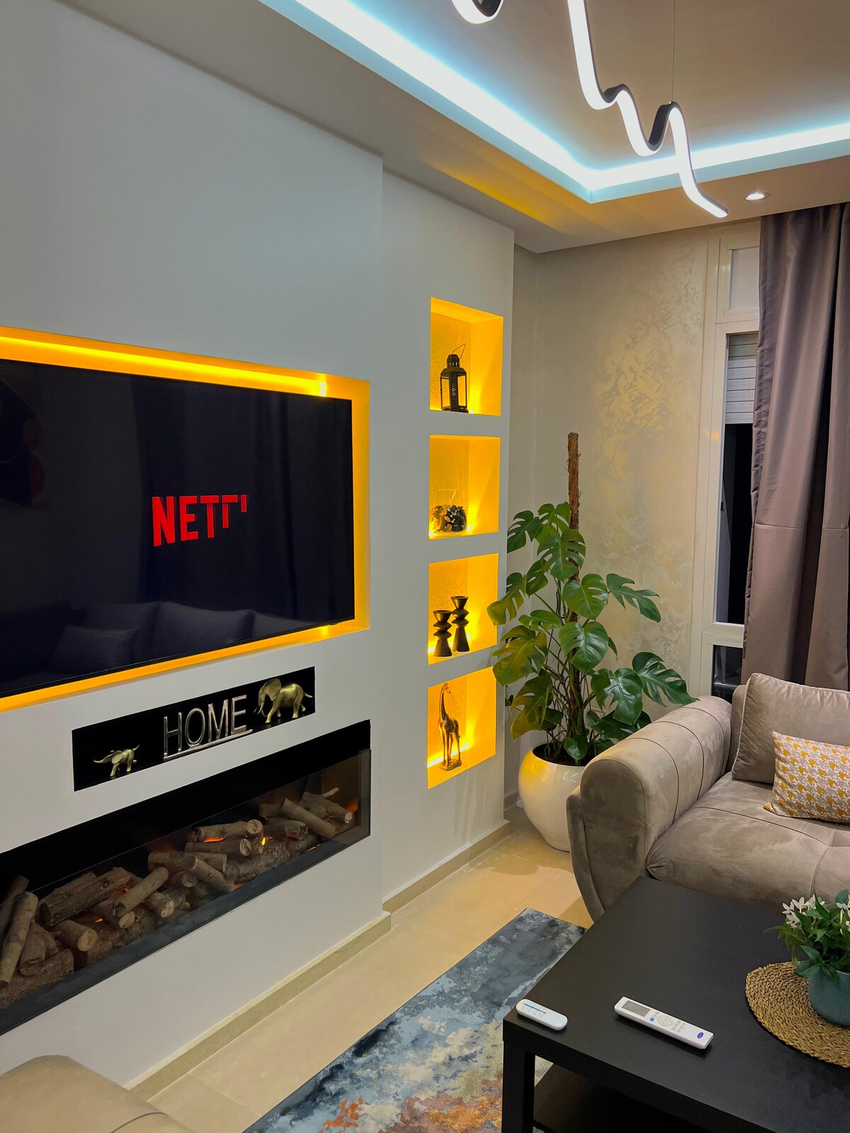 Appartement lumineux, chaleureux et confortable, idéal pour se détendre après une journée bien remplie. Grand salon avec matelas moelleux, cuisine équipée, chambre douillette et TV, Fibre Optique, NETFLIX. Situé dans un quartier calme, l'appartement est proche de toute commodité : centre ville, commerces, transports, marina, monuments. Parfait pour professionnels, familles, couples ( mariés pour les marocains) . Vous vous sentirez chez vous dès votre arrivée !