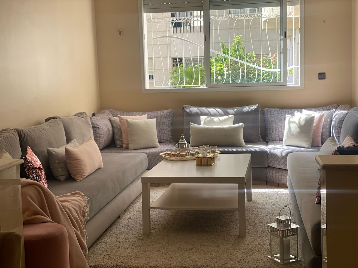 Un charmant appartement,Situé au rez-de-chaussée, pratique pour ma personne âgée. vue sur jardin, idéalement situé dans un endroit calme, à seulement 15 minutes de la ferme des loisirs, la plage, les jardins exotiques, Magic Parc, la gare ferroviaire et la tour Mohammed VI. À proximité de marina et l'aéroport de Salé. Avec son goût raffiné, propreté optimale et équipement complet, cet endroit offre un cadre confortable pour votre séjour, vous permettant de profiter de votre temps de détente.