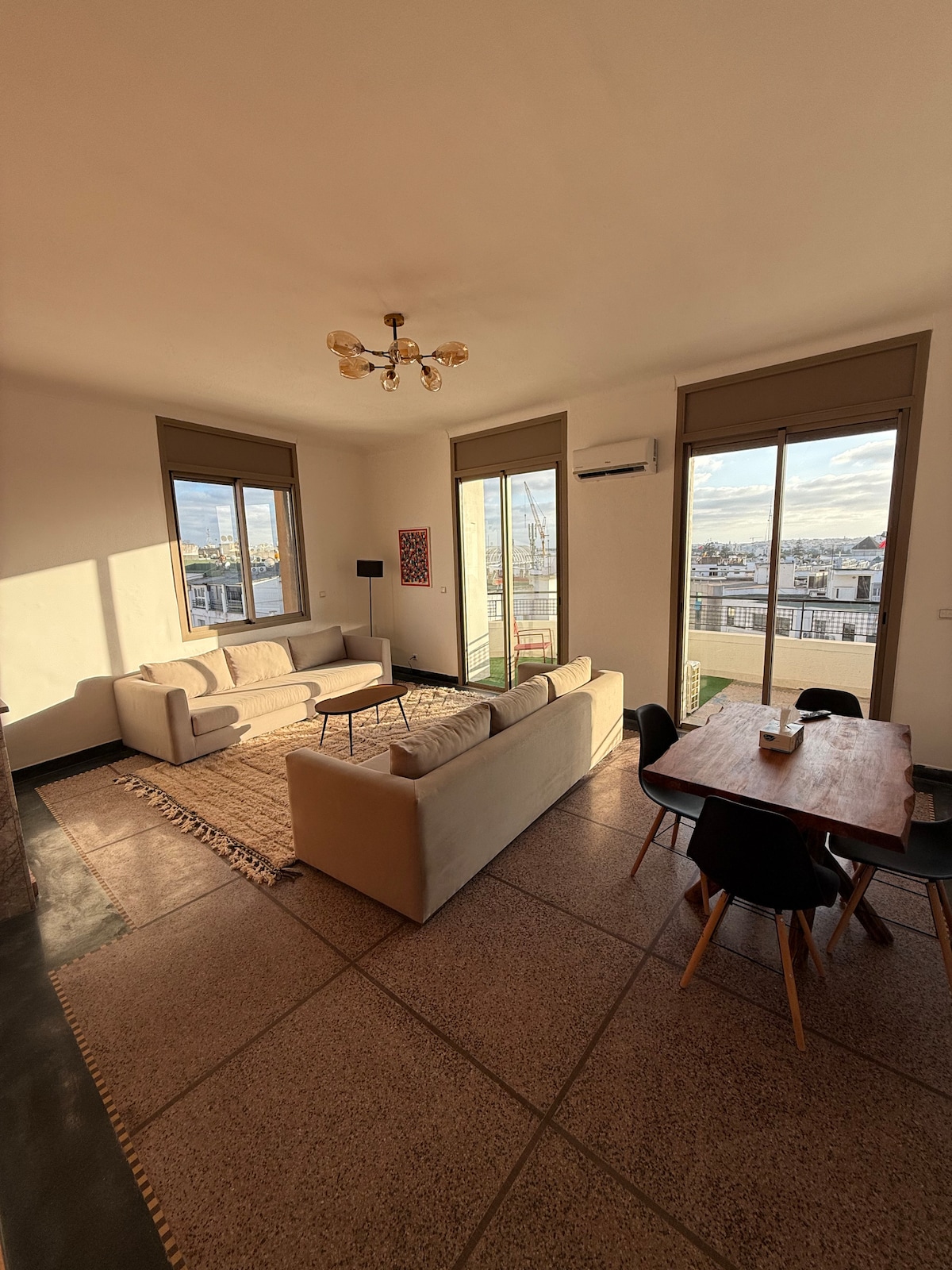 Grand appartement de luxe et confort au cœur d’Agdal, Rabat. Tout est neuf et soigneusement aménagé pour un séjour agréable. Emplacement idéal : à deux pas du tram, de Starbucks, McDonald’s et du café Oliveri -toutes commodités à portée de main. Parfait pour les voyageurs cherchant confort, style et proximité du centre. Netflix gratuit inclus, internet haut débit ultra-rapide et self check-in pour une arrivée simple et flexible. L’appart est équipé d’une chaise pour bébé ainsi que d’un lit bébé.