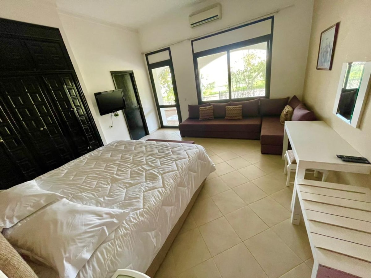 Séjour paisible à la campagne, à quelques minutes de la plage, avec grand salon, vue sur le jardin, cuisine entièrement équipée et parking privé à l’intérieur de la propriété pour votre sécurité – idéal pour une escapade détente. Veuillez noter : -Les couples marocains non mariés ne sont pas autorisés. -L'alcool n'est pas autorisé dans la propriété.