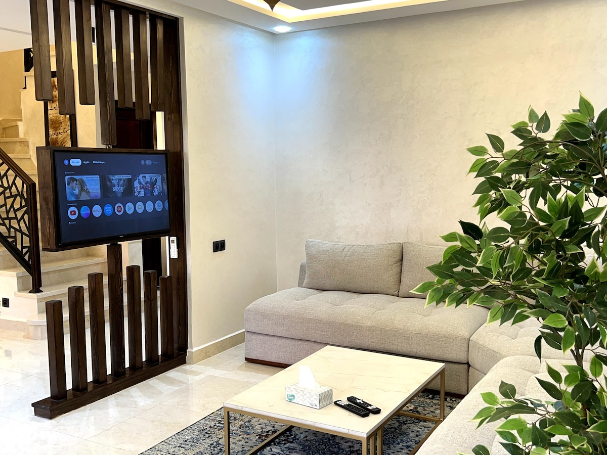 Bienvenue dans ce havre de paix idéalement situé dans le quartier Souissi, l’un des quartiers les plus sécurisés de Rabat. Niché dans un environnement paisible, ce logement est parfait pour les voyageurs en quête de tranquillité, de confort et de proximité avec les lieux de la capitale. À quelques minutes du Golf Royal Dar Es Salam, du Club d’Équitation Dar Es Salam, du marché Dar Salam et du Club Wifak, vous profiterez d’un emplacement alliant calme résidentiel aux, culturelles et commerciales