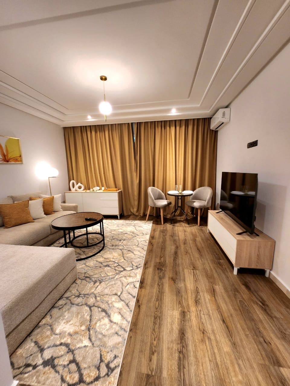 Bienvenue dans ce studio raffiné, idéalement situé entre le centre-ville dynamique de Rabat et la charmante Médina historique. Vous profiterez d’un cadre élégant alliant modernité et authenticité marocaine, parfait pour un séjour confortable et paisible. Parfait pour couples, voyageurs solo ou télétravail. 🚶‍♂️ Accès facile au tram et centre-ville