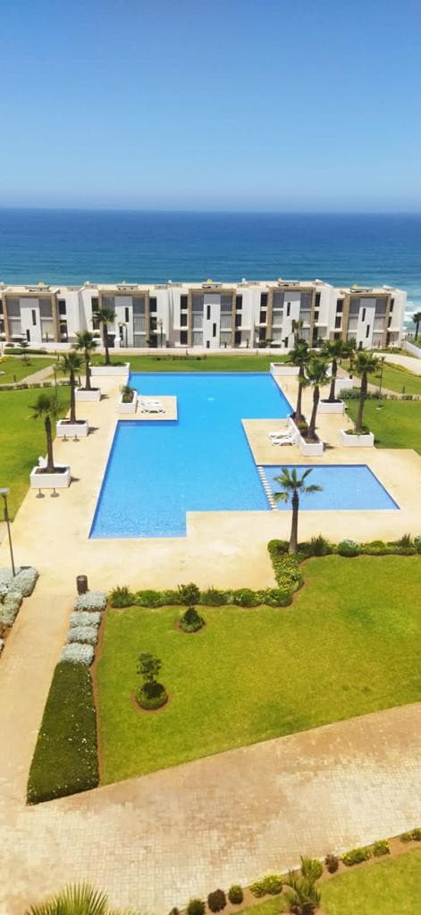 Appartement panoramique baigné de soleil avec terrasse face à l’océan et petite piscine privée. Suite parentale avec TV et salle de bain. Deuxième chambre avec accès terrasse. Deuxième salle de bain. Salon confortable, TV 50”, Netflix et Wi Fi, cuisine équipée avec bar, climatisation centrale. Résidence clôturée et sécurisée avec parking et garage. Grande piscine commune ouverte toute l’année. Plage de Cherrat et Bouznika à quelques minutes. Calme absolu. Idéal pour familles et couples.