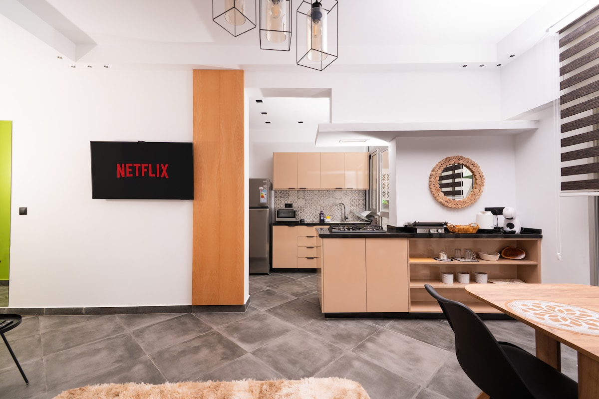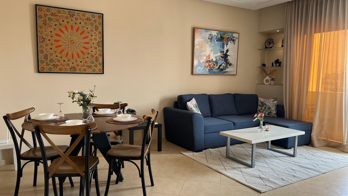 New, luxurious and relaxing 2 BR coastal apartment located in the heart of Rabat for travelers who value comfort & serenity, decorated with taste and attention to details with an astonishing seaview. Its strategic position allows you to easily walk to most city's attractions, restaurants and shops. Fully equipped APT, air conditioner in the main bedroom, High speed WIFI, Netflix, Coffee and literally the BEST Sunset VIEW in Rabat Book now, I have set all the conditions to make you feel at home!