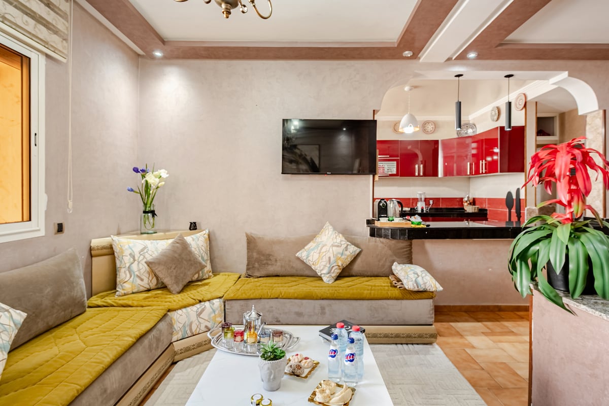 Private renovated flat of 1 living room and one bedroom in the heart of Rabat Agdal. The apartment is close to so many shops, restaurants MCDO starbucks...., clubs, 2 blocks from the tramway. 1 Tv and WIFI and NETFLIX. Appartement privé refait à neuf situé au coeur de l'Agdal à proximité de nombreux magasins, restaurants, tram .1 Tv et WIFI et NETFLIX"
