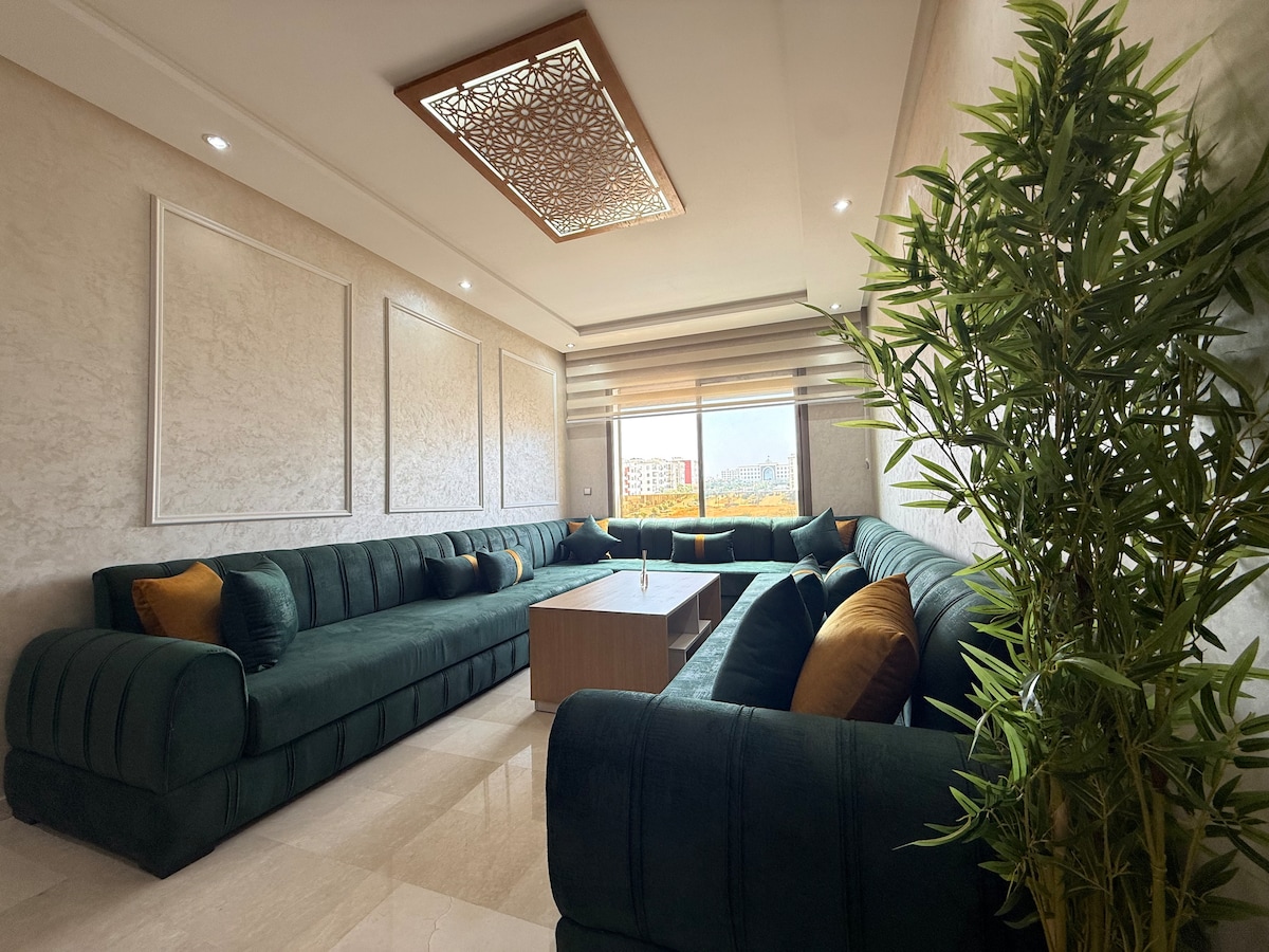 Découvrez notre magnifique appartement à deux chambres, idéal pour votre séjour à Meknès. Profitez d'un spacieux salon, d'une cuisine entièrement équipée, d'une salle de bains moderne et d'une salle à manger accueillante. Nous avons pris soin de votre confort avec des matelas médicaux pour des nuits paisibles. De plus, le parking est inclus pour votre commodité .Réservez dès maintenant pour vivre une expérience inoubliable dans notre superbe appartement !