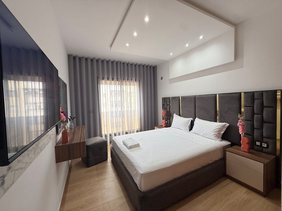 Experience luxury in the heart of Rabat, Morocco's capital city! This refined space features cozy nooks, a comfortable bed, a fully-equipped kitchen, and free WiFi. It has everything you need for a soothing stay. This modern apartment is located in the chic upper side of Agdal, close to the Sofitel Hotel, Descartes School, and Ibn Sina Forest. Conveniently located, the flat is few steps away from the main street, full of shops, cafes and restaurants. It's only 10 minute-drive from the Medina.