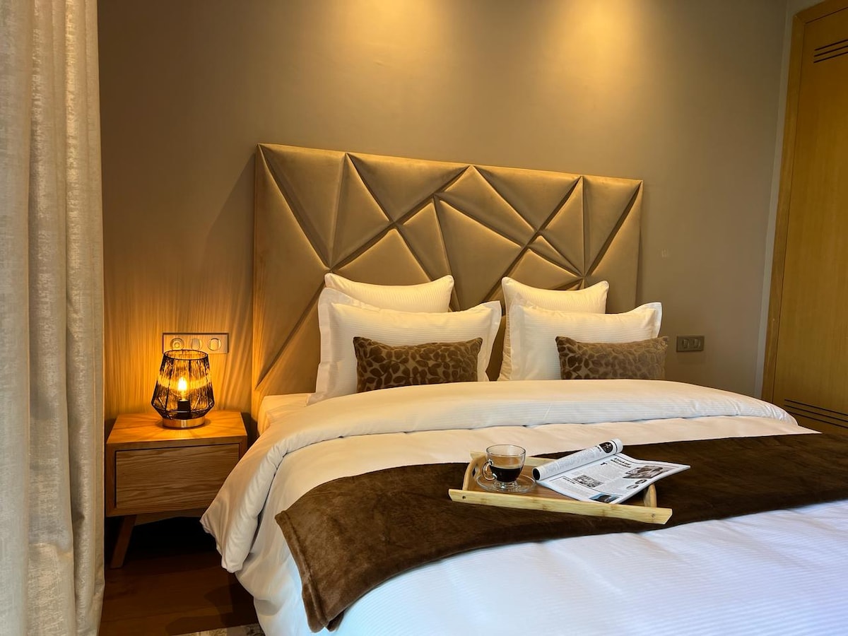 Inside Rabat's, most prestigious, Souissi neighbourhood, is a 2,800 sqf sanctuary of luxury at the prestigious Place Des Zaers compund. This elegantly retreat offers vibrant decor, spacious living areas, a fully equipped kitchen, and a serene garden to unwind. With secured underground parking, and optional cleaner and cook services on request, and just minutes from Royal Golf Dar Essalam, it promises an exceptional blend of comfort and sophistication for a truly refined city stay.