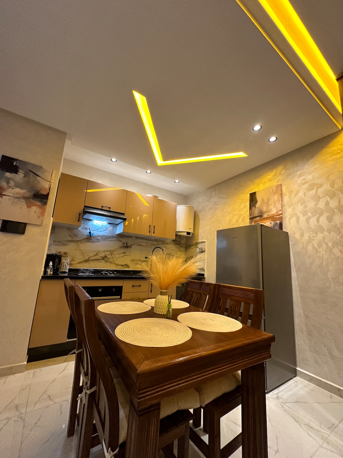 Appartement tout neuf, fabuleux, bien équipé doté d'une connexion haut débit fibre optique, Netflix, IPTV... calme et sécurisé. Cet appartement offre des moments de détente pour toute la famille avec parking gratuit sur place.A 500m du grand Carrefour Salé, épiceries à quelques pas pour faire vos courses. Proche de Burger King,Nigiri House,Adidas,Fitness Park,salon de coiffure et hammam...A 200m de la mer où se trouvent des cafés avec une vue panoramique sur l'océan!Vous serez les bienvenus