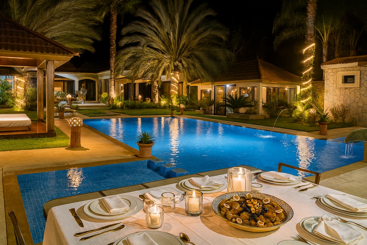 La villa des grenadiers est située en pleine forêt de Benslimane. Bâtie et décorée avec goût et harmonie, elle dispose de 4 suites avec leurs salles de bain, 3 salons, 1 salle à manger et une cuisine, d’un magnifique parc, d’une grande piscine privée, d’un sublime jardin arboré aux multiples essences, et d’un terrain de foot. Pour les passionnés des randonnées, nous pourrons vous connecter avec des guides expérimentés qui vous proposeront des formules adaptées à vos besoins.