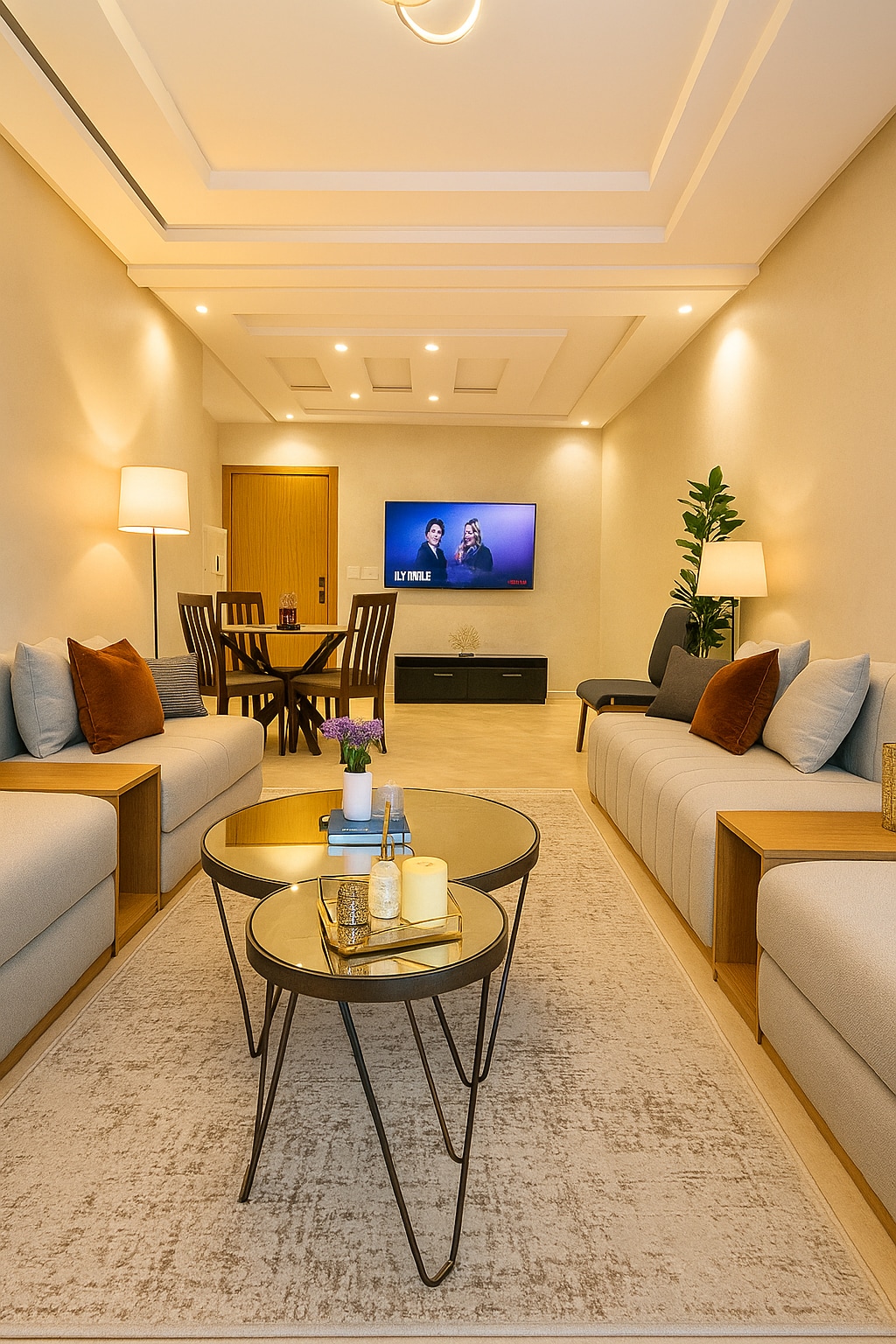 Découvrez ce logement moderne et paisible au cœur de Salé, à quelques minutes à pied du tramway, des commerces, de la gare et de toutes commodités. 🛏️ Deux chambres confortables + salon spacieux avec Smart TV 43", Netflix, IPTV et fibre optique haut débit. ❄️ Climatisation disponible en option. 🍽️ Cuisine entièrement équipée : idéale pour les séjours courts ou longs. 📍 À 5 km du quartier Hassan, 4 km de la marina de Rabat et 7 km de l’aéroport. 🛎️ Confort et emplacement idéal garantis.