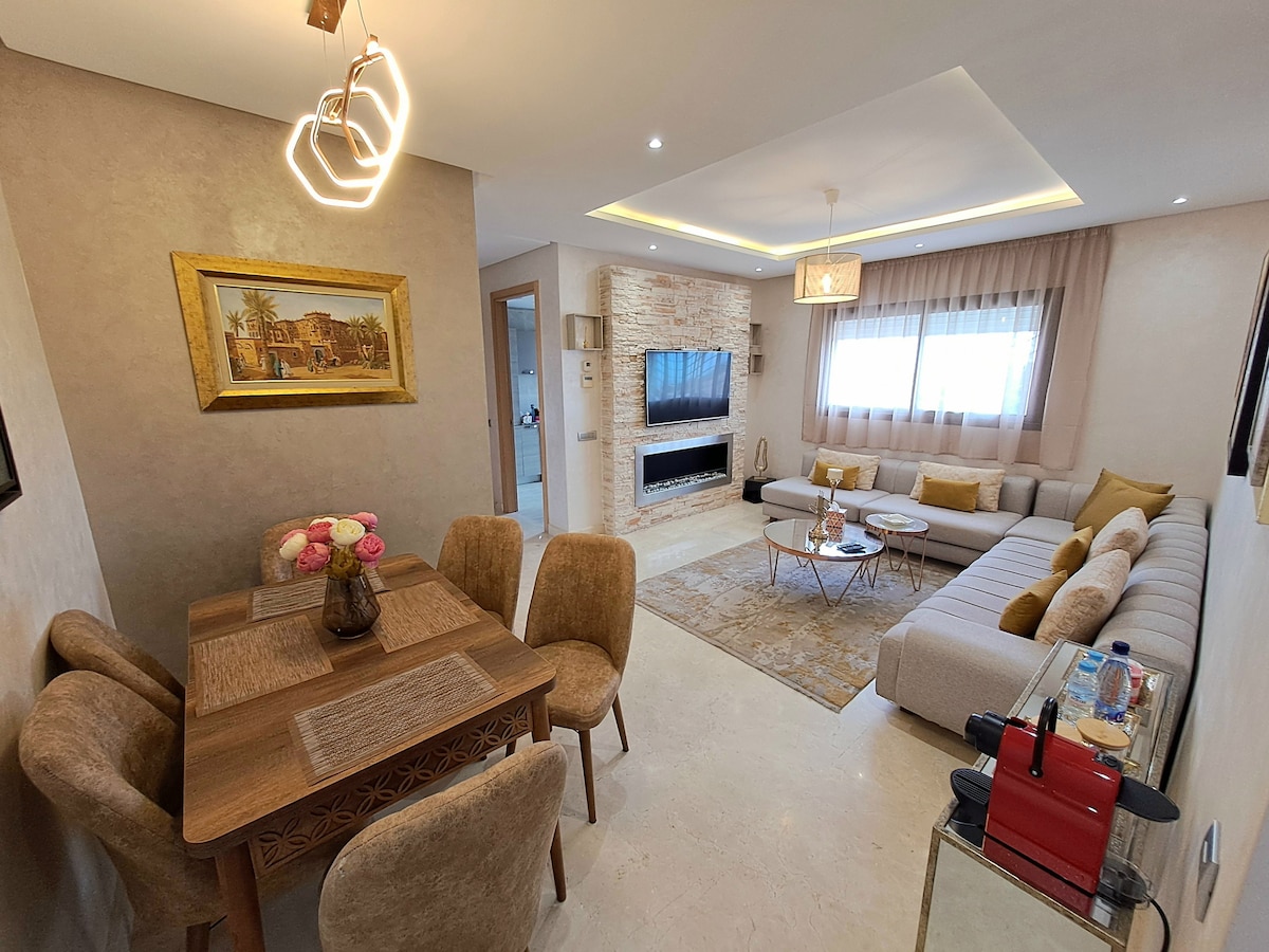 Profitez d’un appartement haut standing, lumineux et très confortable à Salé, dans une résidence calme et sécurisée, proche du tram et à env. 7 min à pied de la gare Salé-Tabriquet. Accès rapide à Rabat, à la Marina de Salé (env. 2 km) et à l’aéroport Rabat-Salé. 🛋️ Grand salon (TV 65", Netflix & IPTV) 🛏️ Suite parentale + 2ᵉ chambre 🛌 5ᵉ et 6ᵉ couchages possibles au salon (2 canapés) 🍽️ Cuisine équipée • 🌿 Balcon 📶 Fibre rapide • 🚗 Parking + garage en option • ❄️ Clim en option
