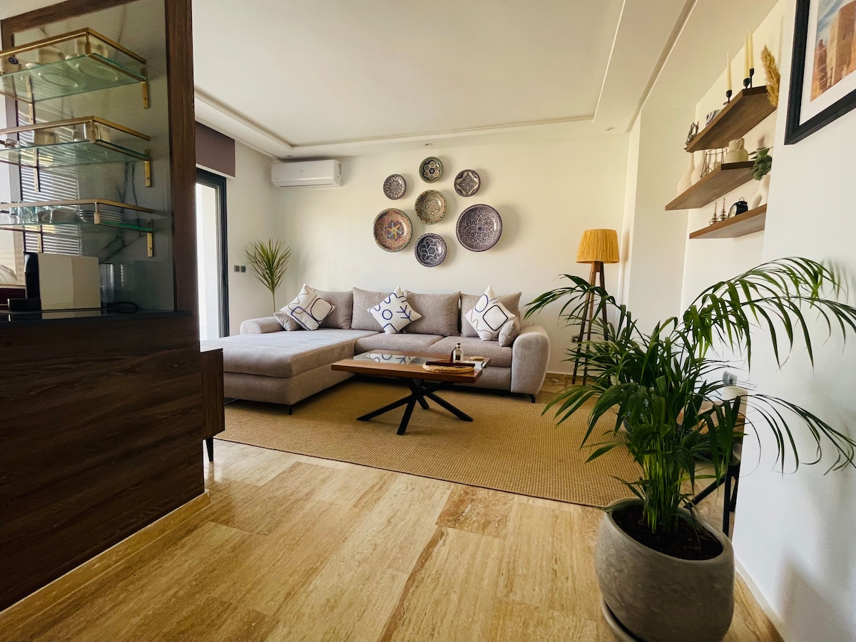 Profitez d'un logement élégant et central. Paisible avec un style tres cozy. Ce logement va vous charmer par sa tranquillité et sa décoration! Fraîchement rénové par nos soins il saura subvenir a tout vos besoin avec son équipement complet! Son aspect central bien situé au kilomètre 0 de la capital vous aidera a découvrir la belle ville de rabat tres facilement et à explorer avec tranquillité toutes ses petite facette!