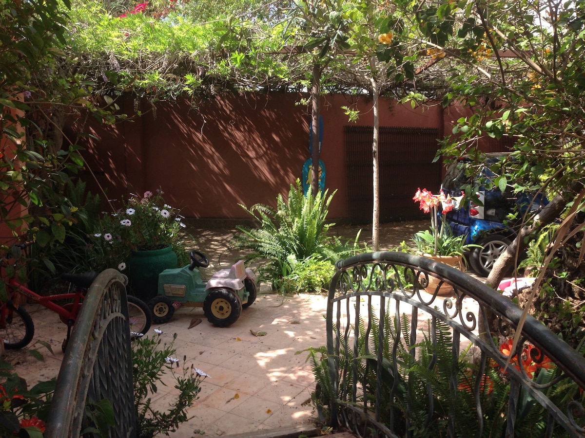 Cette jolie maison offre 7 chambres confortables, articulées autour du puits de lumière sur 2 étages. Un petit Jacuzzi sur le toit terrasse permet de profiter du climat tempéré de Rabat. Avec de nombreuses combinaisons de couchage, la maison se prête aisément à l’accueil de familles et amis Comme l’indique son nom – Louane - la rénovation a été pensée pour mettre en valeur de douces couleurs pastel et chaque chambre a son décor bien défini.