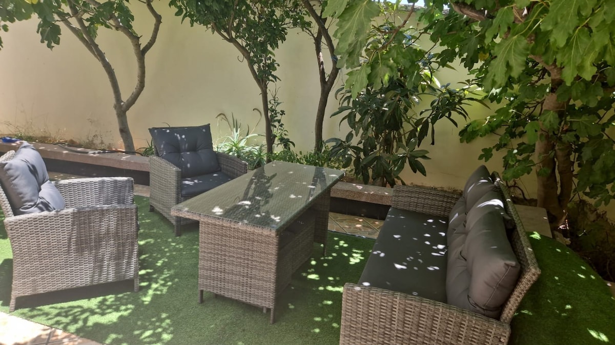 Bienvenue à Mehdia Plage ! Profitez d’un séjour relaxant dans notre bel appartement situé à seulement quelques pas de la mer. Le logement offre : Une chambre avec un lit double confortable Une salle de bain avec douche à l’italienne Une cuisine entièrement équipée Un salon confortable avec grands canapés Une terrasse aménagée avec table, chaises et une balançoire pour des moments de détente uniques Équipements inclus : Machine à café Nespresso Wi-Fi fibre optique haut débit 2 Smart TV(50”et 43”)