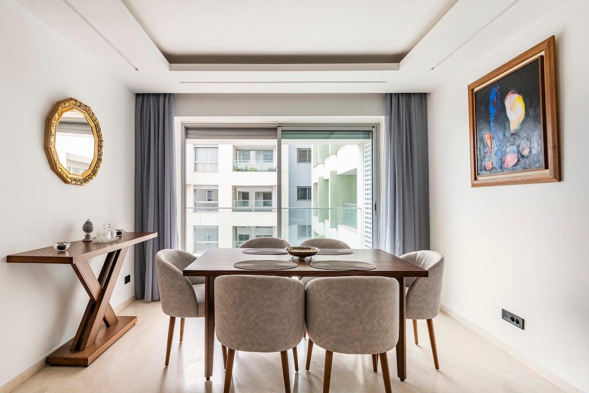 Découvrez le chic d’une palette de couleurs sobres, marié à un design intérieur moderne et taillé sur mesure. Notre appartement PRESTIGE de 85 m² au sein d'une résidence hôtelière de très haut standing vous plonge dans une ambiance élégante et feutrée et vous donne la possibilité de partager des moments inoubliables en famille ou entre amis. Sentez-vous comme chez vous, le temps de votre séjour à Rabat.