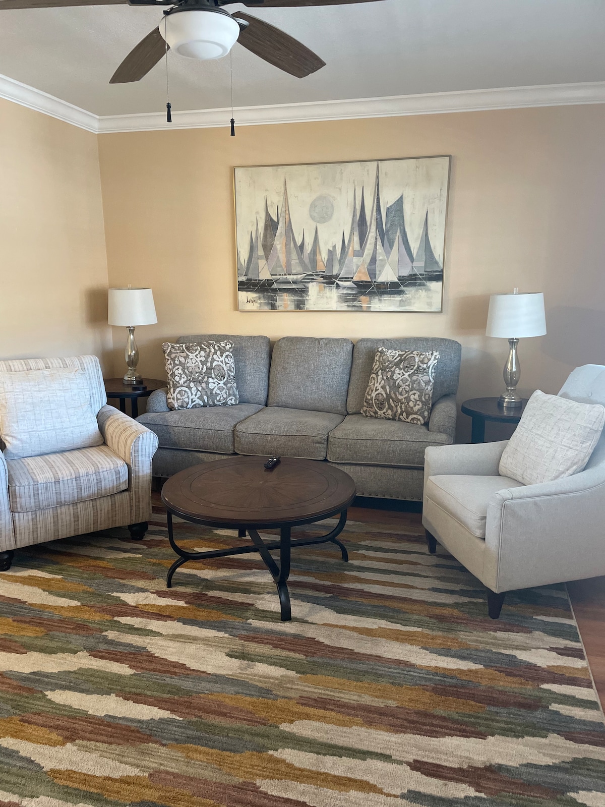 Highlights . Downtown Clayton Condo in a. Remodeled 4-unit building. . Walking distance to local restaurants & shopping. Living Space . Updated Wi-Fi. . Living room with new sofa bed, new comfy chair & a Smart TV. Bedrooms . two bedrooms with queen beds. . Dresser, nightstand, coat hangers, & luggage rack. Kitchen & Bath . Kitchen with coffee maker. Air fryer microwave toaster oven & cookware. . Bathroom with walk-in shower. Comfort & Extras . Front porch seating. . Air conditioning & heating