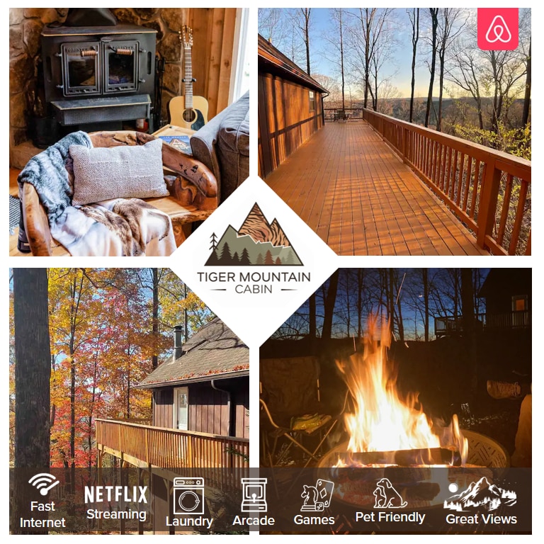 Escape to the heart of nature with our charming cabin, centrally-located on Tiger Mountain. Just minutes away from bustling downtown Clayton, vineyards, and Tallulah Gorge State Park, our cabin offers the perfect balance of convenience and serenity — mountain views, a cozy fireplace, and a comfy couch! Fully equipped with everything you need for a relaxing getaway! *NEW* 220 volt EV charger for your vehicle! Note, you may need an adaptor for your vehicle. 4WD highly recommended