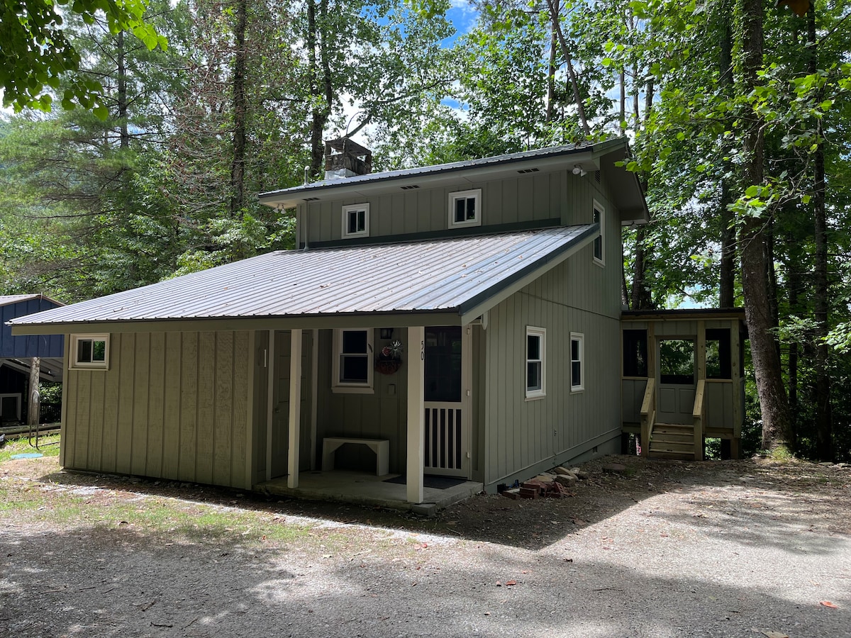 The perfect couples retreat. Beautiful guest house with long range mountain view. Vaulted ceilings, outside deck overlooking seven mountains. Area has small paved road winding through the woods. Great for your daily walks. Community is bordered by the Warwoman Wildlife Management Area. 2 miles from the center of town in a quiet mountain top community. The perfect home base for hiking, fishing, bird watching, boating, river rafting, shopping, dining and just chilling out.