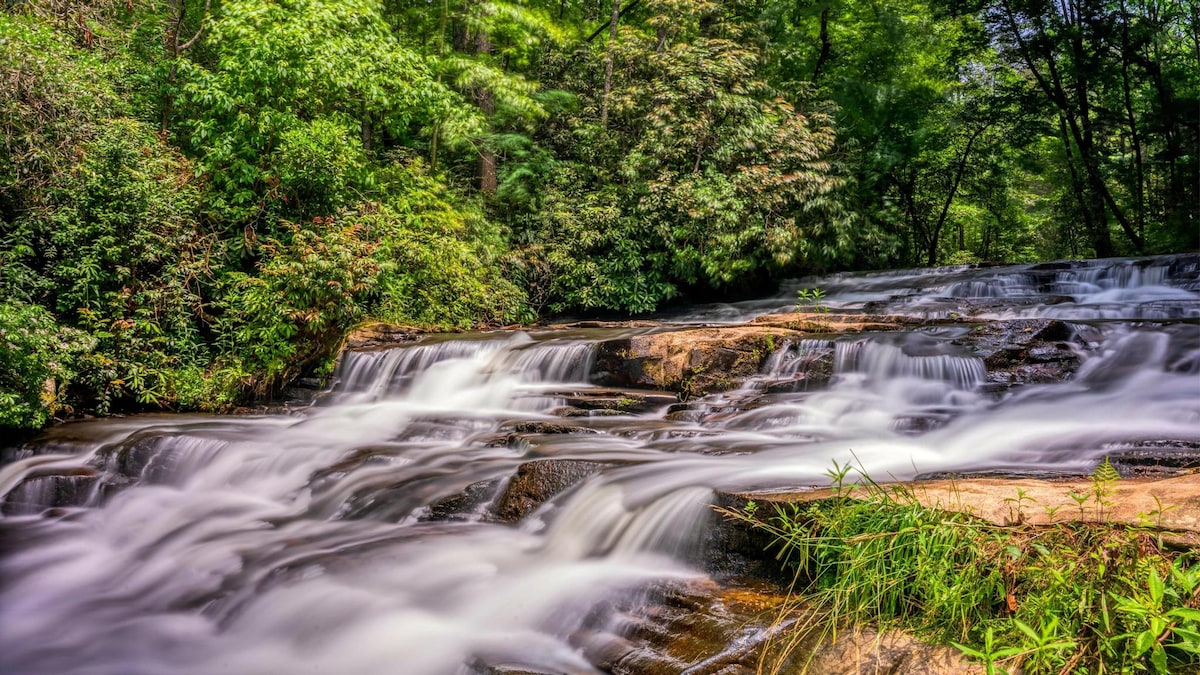 Secluded, yet just 3 minutes from town. Paved road leads to the cabin. Enjoy the peaceful sound of the creek fed by 2 waterfalls. 4 guests only-NO exceptions! Infants/children ARE guests. No pets of any type. NO smoking/vaping inside. LL: Bedrooms, bath, laundry & porch. UL: Kitchen, living area, bath & screened porch. We know that you'll fall in love with the area. Clayton has been voted best "Farm to Table" community in GA and has many wineries and waterfalls!
